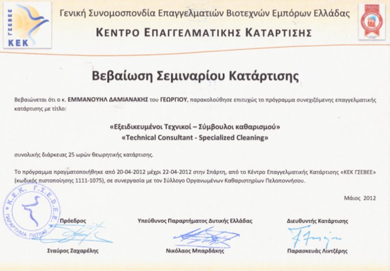 Η εταιρία μας πέρα από τις υπηρεσίες που μπορεί να σας προσφέρει, έχει τη συμβουλευτική δυνατότητα για θέματα που αφορούν τους καθαρισμούς ή για προβλήματα που μπορεί να προκύψουν κατά την εφαρμογή τους.